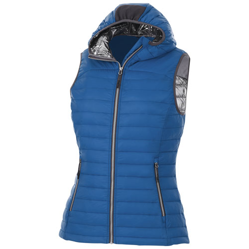 Damski ocieplany bezrękawnik Junction. Mieści się w dolnej lewej kieszeni.Port wyprowadzający media z miejscem poprowadzenia kabla.Elastyczny ściągacz w kapturze i w pasie ze stoperami.Elastyczne sciągacze w kontrastowym kolorze.Szwy kształtujące sylwetkę oraz zwężana talia.Zamek błyskawiczny na froncie.Przednia kieszeń na zamek.Pętelka na wieszak.Metka wdrukowana transferem dla lepszego komfortu. Tkanina 100% Nylon dull cire, nieprzemakalna i nieprzepuszczająca puchu. Sztuczny puch 100% poliester. 38 g/m².