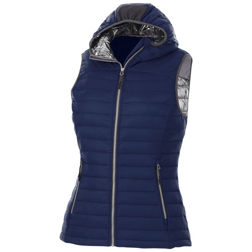 Damski ocieplany bezrękawnik Junction. Mieści się w dolnej lewej kieszeni.Port wyprowadzający media z miejscem poprowadzenia kabla.Elastyczny ściągacz w kapturze i w pasie ze stoperami.Elastyczne sciągacze w kontrastowym kolorze.Szwy kształtujące sylwetkę oraz zwężana talia.Zamek błyskawiczny na froncie.Przednia kieszeń na zamek.Pętelka na wieszak.Metka wdrukowana transferem dla lepszego komfortu. Tkanina 100% Nylon dull cire, nieprzemakalna i nieprzepuszczająca puchu. Sztuczny puch 100% poliester. 38 g/m².