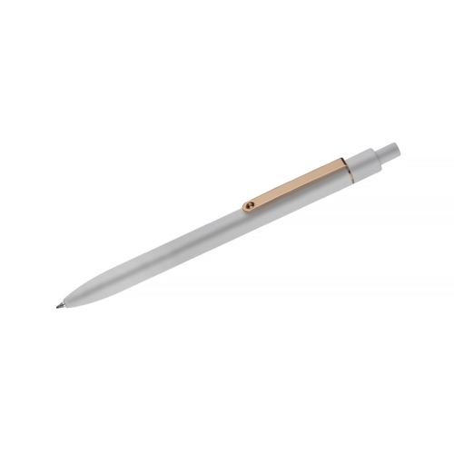 Stylowy długopis aluminiowy z matowym wykończeniem i klipem w kolorze złotym.
