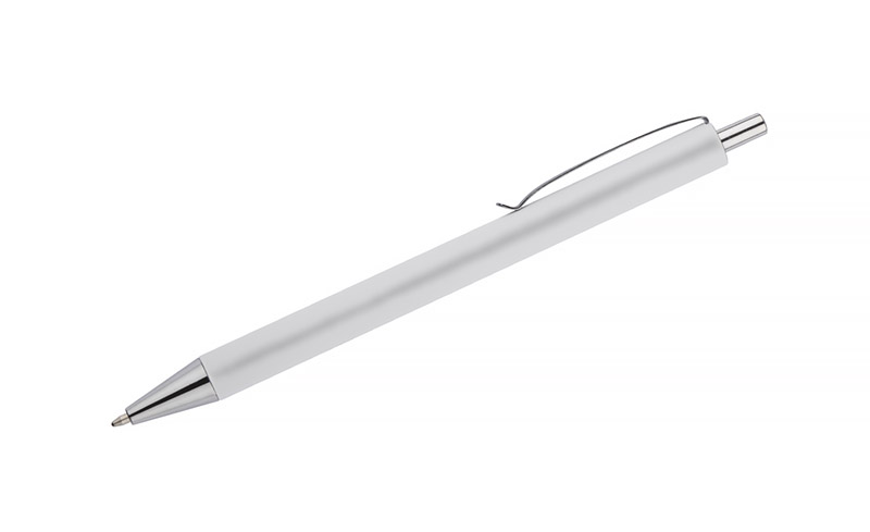 Długopis NOVI wykończony przyjemna w dotyku gumowana powierzchnią z chromowanymi elemantami w kolorze srebrnym. Wkład w kolorze niebieskim.