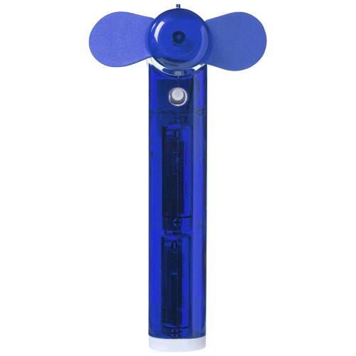 Kieszonkowy wentylator wodny Fiji. Kieszonkowy wentylator z małym zbiornikiem na wodę i spryskiwaczem, znakomity na upalne letnie dni. W zestawie z 2 bateriami AA. Polistyren i polipropylen.