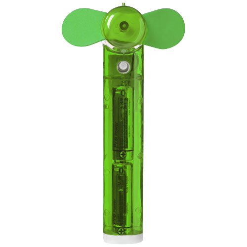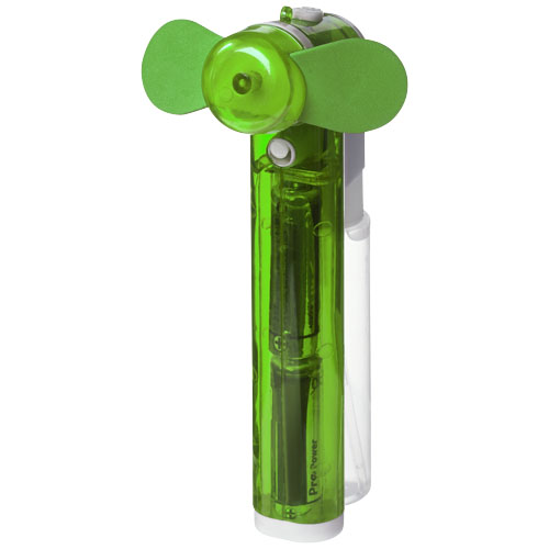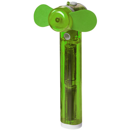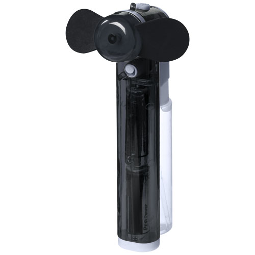 Kieszonkowy wentylator wodny Fiji. Kieszonkowy wentylator z małym zbiornikiem na wodę i spryskiwaczem, znakomity na upalne letnie dni. W zestawie z 2 bateriami AA. Polistyren i polipropylen.
