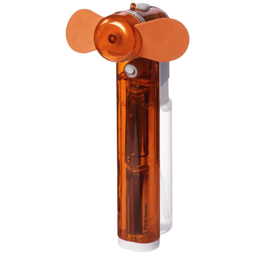 Kieszonkowy wentylator wodny Fiji. Kieszonkowy wentylator z małym zbiornikiem na wodę i spryskiwaczem, znakomity na upalne letnie dni. W zestawie z 2 bateriami AA. Polistyren i polipropylen.