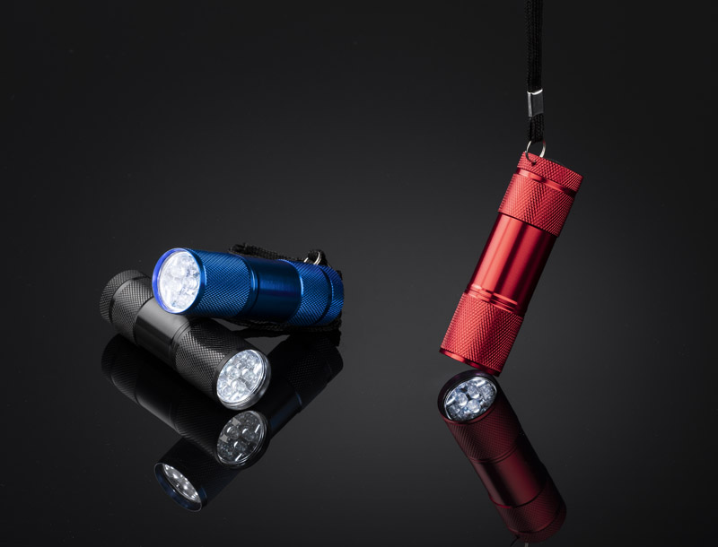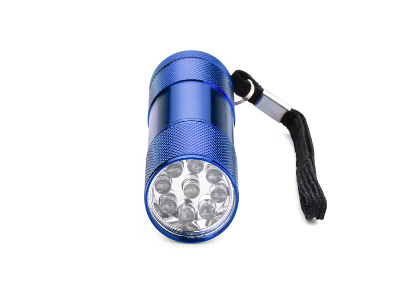 Metalowa latarka LED, 9-diodowa. Logo wygrawerujemy na korpusie latarki. UWAGA - Inne opakowanie. Reklamacji na to nie przyjmujemy.