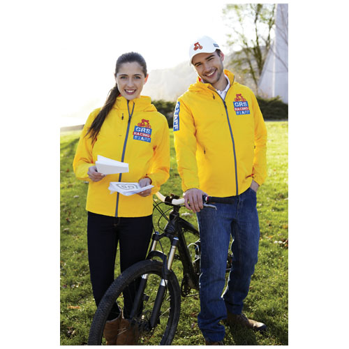 Lekka kurtka Flint. 600mm WP (wodoodporność).Chowany kaptur.Otwory na kciuki.Kieszeń na piersi na zamek.Wywietrznik na plecach.Zakładka sztormowa z blokadą chroniącą przed przycięciem podbróbka.Kontrastowy odwrócony zamek błyskawiczny.Odblaskowe wykończenia.Ściągacze w mankietach.Elastyczny ściągacz w kapturze i w pasie ze stoperami. Materiał typu 240T ze 100% poliestru z warstwą wodoodporną. 80 g/m².