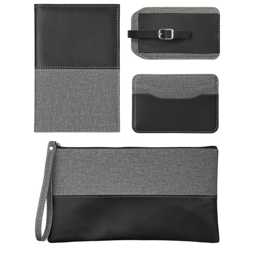Melanżowa zawieszka do bagażu. Odchylane przywieszki z paskiem. Wewnątrz znajduje się identyfikator. Termoplastyczny PU.