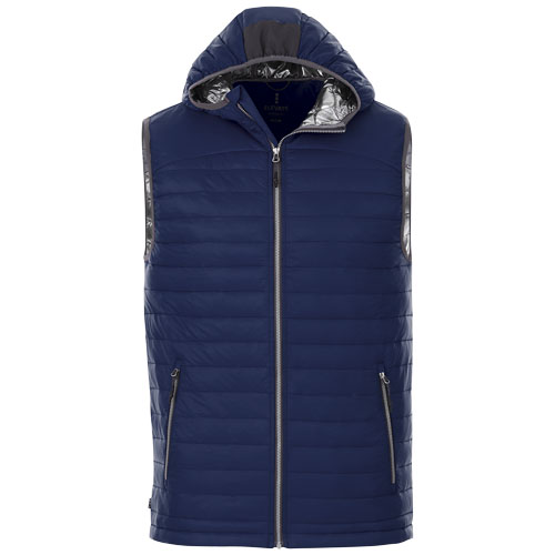 Męski ocieplany bezrękawnik Junction. Mieści się w dolnej lewej kieszeni.Port wyprowadzający media z miejscem poprowadzenia kabla.Elastyczny ściągacz w kapturze i w pasie ze stoperami.Elastyczne sciągacze w kontrastowym kolorze.Zamek błyskawiczny na froncie.Przednia kieszeń na zamek.Pętelka na wieszak.Metka wdrukowana transferem dla lepszego komfortu. Tkanina 100% Nylon dull cire, nieprzemakalna i nieprzepuszczająca puchu. Sztuczny puch 100% poliester. 38 g/m².