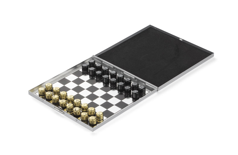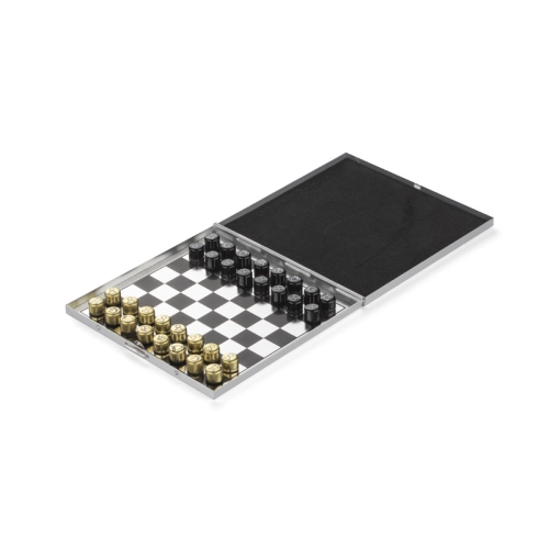Niewielki rozmiar znakomicie sprawdzi się podczas podróży czy wypoczynku na plaży. Zamocowany w pionkach magnes zabezpiecza przed przypadkowym przewróceniem figur w czasie gry oraz zgubieniem ich. Całość wykonana jest z aluminium.