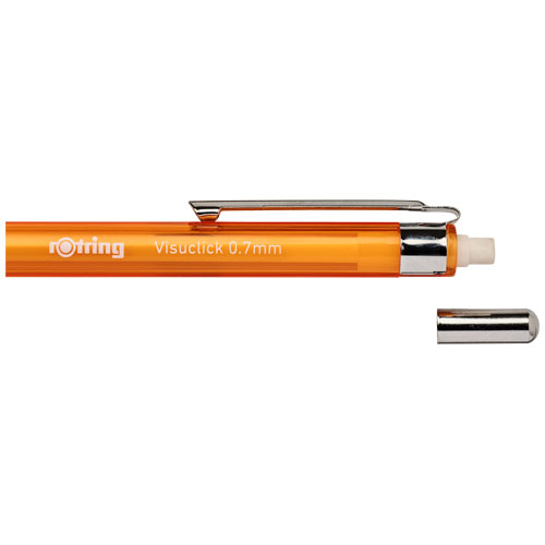 Ołówek automatyczny Visuclick (0,5mm). Wciskany automatyczny ołówek do dynamicznego pisania i szkicowania. Wyposażony w metalowy mechanizm z chowanym posuwem grafitu. Trójkątny uchwyt dla wygodnego użytkowania. Wysuwana końcówka, w środku wysokopolimerowe wkłady o twardości 2B Rozmiar stalówki: 0,5mm. ABS tworzywo sztuczne.