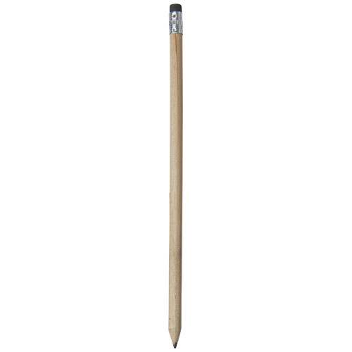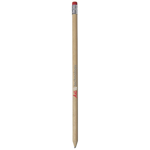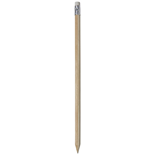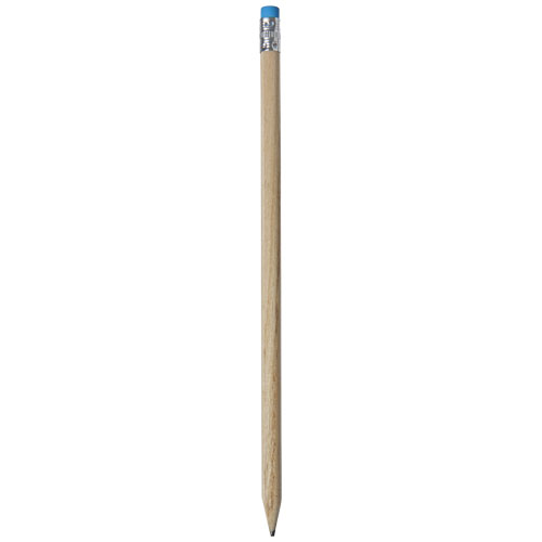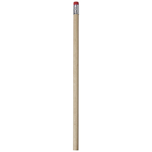 Ołówek drewniany z gumką Cay. Drewniany ołówek z naturalnym korpusem i kolorową gumką. Niezatemperowany. Drewno topolowe.