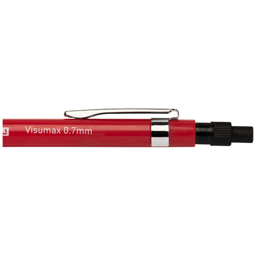Ołówek automatyczny Visumax (0,7 mm). Lekki ołówek automatyczny z gumowanym uchwytem. Wyposażony w metalowy mechanizm z chowanym posuwem grafitu i metalową końcówką. Unikatowa, ukryta gumka wysuwana poprzez przekręcenie. W środku wysokopolimerowe wkłady o twardości 2B Rozmiar stalówki: 0,7mm. ABS tworzywo sztuczne.