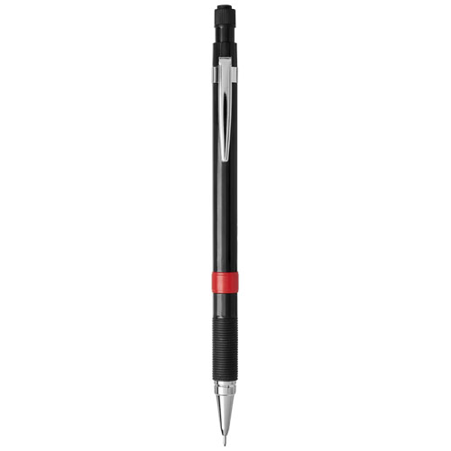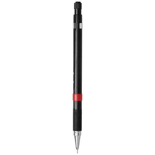 Ołówek automatyczny Visumax (0,5 mm). Lekki ołówek automatyczny z gumowanym uchwytem. Wyposażony w metalowy mechanizm z chowanym posuwem grafitu i metalową końcówką. Unikatowa, ukryta gumka wysuwana poprzez przekręcenie. W środku wysokopolimerowe wkłady o twardości 2B Rozmiar stalówki: 0,5mm. ABS tworzywo sztuczne.