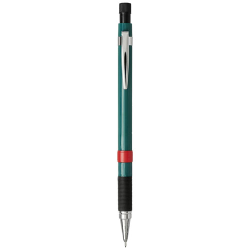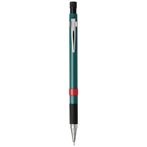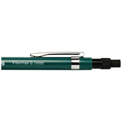 Ołówek automatyczny Visumax (0,5 mm). Lekki ołówek automatyczny z gumowanym uchwytem. Wyposażony w metalowy mechanizm z chowanym posuwem grafitu i metalową końcówką. Unikatowa, ukryta gumka wysuwana poprzez przekręcenie. W środku wysokopolimerowe wkłady o twardości 2B Rozmiar stalówki: 0,5mm. ABS tworzywo sztuczne.