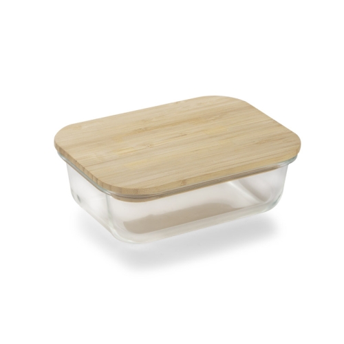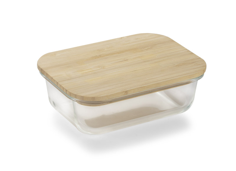 Pojemnik na żywność ALVA wykonany jest z wysokiej jakości szkła borokrzemowego. Pojemnik posiada przykrywkę z naturalnego bambusa. Można go stosować jako pojemnik lunchowy, jako pojemnik do przechowywania żywności, a ponadto można w nim podgrzewać potrawy w piekarniku lub kuchence mikrofalowej. Pojemność 430 ml.