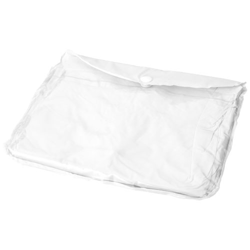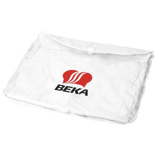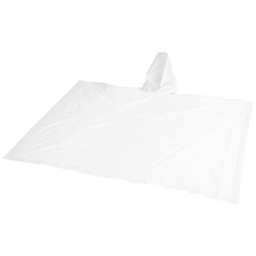 Ponczo przeciwdeszczowe z kapturem w etui. Ponczo (120x120 cm) z kapturem i regulowanymi ściągaczami na rękawach. Nadruk możliwy tylko na dołączonym, otwieranym etui z przejrzystym panelem z przodu. PVC.