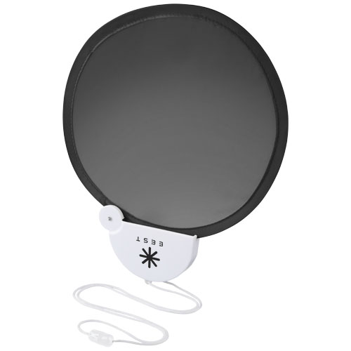 Składany wachlarz ręczny ze sznurkiem Breeze. Elastyczny nylonowe składany wiatrak z plastikowym futerałem. Posiada sznurek na szyję. Plastik ABS.