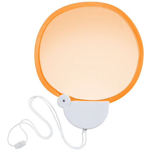 Składany wachlarz ręczny ze sznurkiem Breeze. Elastyczny nylonowe składany wiatrak z plastikowym futerałem. Posiada sznurek na szyję. Plastik ABS.