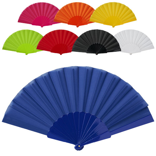 Składany wachlarz Maestral w pudełku papierowym. Składany wachlarz zapewniający chłodny podmuch w letnie dni. Ten powitalny prezent dostępny jest w szerokiej gamie kolorów i zapakowany jest w pudełko upominkowe. Ten typ produktu, ze względu na swoją budowę i zastosowanie, sprawia, że mogą pojawić się niewielkie rysy. Poliester.